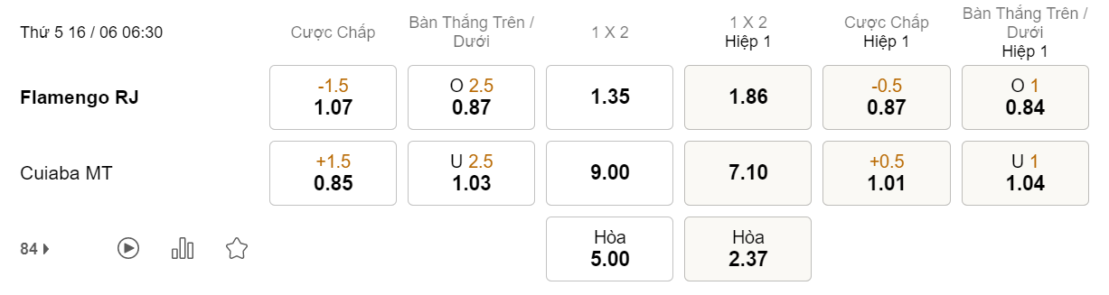 Tỉ lệ kèo Flamengo vs Cuiaba
